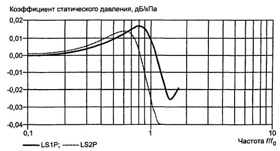 Низкочастотное значение коэффициента статического давления обычно находится в пределах от минус 0,01 до минус 0,02 дБ/кПа для микрофонов типа LS 1 Р и от минус 0,003 и минус 0,008 дБ/кПа для микрофонов типа LS2P.