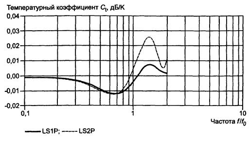 микрофонов разных производителей. Поэтому данные о температурном коэффициенте Значение температурного коэффициента в диапазоне низких частот обычно находится в пределах ± 0,005 дБ/К для микрофонов типов LS1P и LS2P. Рисунок В.2 - Типичная