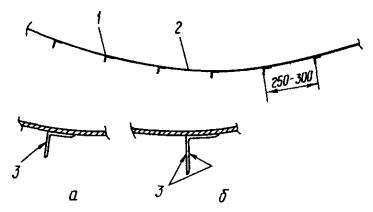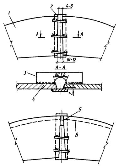 2. Измерения следует производить для каждого пояса на расстоянии до 50 мм от верхнего горизонтального шва по вертикалям, расположенным в местах вертикальных швов стенки (в полистовых - нижнего пояса стенки).
