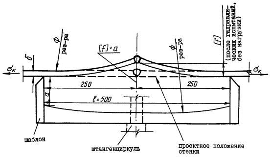 Определение отклонений образующих стенки от вертикали производят в следующей последовательности (см. чертеж):