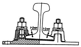 где r - погонное сопротивление рельсов (при замерзшем балласте принимается r = 25 кН/м) или шпал (при незамерзшем балласте r = 7 кН/м - при неуплотненном балласте и r = 12 кН/м - при уплотненном) продольному перемещению в пределах анкерного участка. 4.7.6. Для контроля равномерности удлинения плети на подошву рельса в створе с краем подкладки через каждые 50 м наносят риски, расчетное перемещение которых: