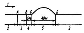 где Nt, - температурная сила, возникающая в плети при перепаде температур относительно температуры ее закрепления; r - погонное сопротивление плети; a - коэффициент линейного расширения рельсовой стали (a = 0,0000118 1/град); Е - модуль упругости рельсовой стали (Е = 2,1·106 кгс/см2); F - площадь поперечного сечения рельса (для Р65 F = 82,56 см2); Dt - перепад оптимальной температуры закрепления рельсов относительно температуры рельсов в момент производства работ. Рис. П.4.2. Схема изгиба рельсовой плети при сварке с предварительным изгибом: A, В - места сварки; С, Д - начало и конец изгиба плети; 1 - направление движения ПРСМ; 2 - рельсовая плеть не раскрепляется; 3 - вставка; 4 - скрепления ослабляются; 5 - скрепления удаляются. Рис. П.4.3. Эпюра температурных сил в рельсовой плети в зоне производства работ: А, В - места сварки Величина необходимого удлинения конца плети Dlу в точке А определяется зависимостью: