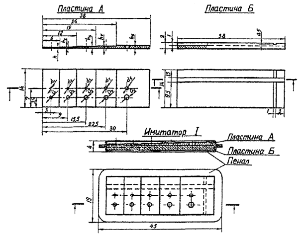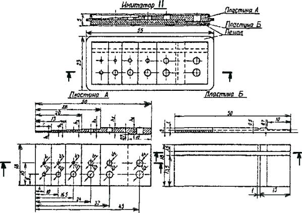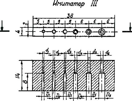 На рис.1 (а, б, в) и в таблицах к ним представлены возможные варианты имитаторов и их размеры. а