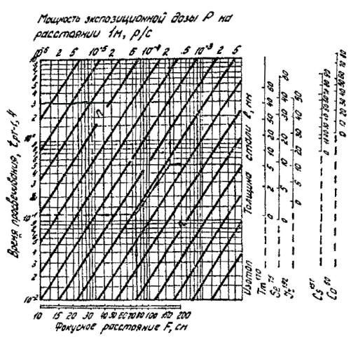 2. Универсальная номограмма для определения времени просвечивания сплавов на