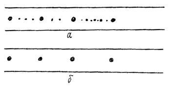 Рис. 6. Пример маркировки при просвечивании трубопроводов «на эллипс» за две экспозиции: а - первая экспозиция; б - вторая экспозиция при смещении источника на 90°