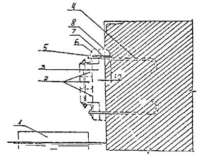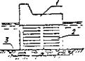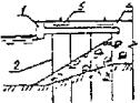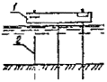 Диаметр шлангов при бетонировании инъекционным методом подбирается в соответствии с диаметром выходного патрубка применяемого растворонасоса. Трубы следует соединять плотными, водонепроницаемыми, легко соединяемыми фланцами или болтами. Стыковать резинотканевые шланги рекомендуется цанговыми соединениями. Все виды соединений должны обеспечивать взаимозаменяемость звеньев вливающих труб. 4.4.56. Для первоначального заполнения труб бетонной смесью или раствором следует применять предохранительные устройства или клапаны, которые должны обеспечивать равномерное заполнение труб смесью без соприкосновения ее с водой, а в случае необходимости ограничивать скорость движения смеси в трубе. 4.4.57. Бетонные работы, выполняемые методом ВПТ, бывают двух типов: собственно метод ВПТ, когда движение бетонной смеси в трубах и распространение ее в бетонируемом элементе (блоке) происходит под воздействием собственной массы смеси благодаря ее высокой подвижности и связности; метод ВПТ с вибрацией, когда движение бетонной смеси в трубах и распространение в бетонируемом элементе (блока) обеспечивается воздействием вибраторов, устанавливаемых на трубах. 4.4.58. Принцип и порядок подводного бетонирования методом ВПТ следующие: в опалубку, ограждающую ремонтируемой элемент или конструкцию, устанавливается труба с воронкой, достигающая дна; через воронку подается бетонная смесь, заполняющая всю трубу до устья воронки; бетонная смесь движется по трубе, выходит из ее нижнего конца под воздействием массы столба, превышающего уровень смеси в опалубке, и, распространяясь в блоке в радиусе R, заполняет бетонируемое пространство, вытесняя воду; при движении смеси по трубе обеспечивается полная изоляция ее от воды, для чего нижний конец трубы остается все время погруженным в свежеуложенную бетонную смесь на глубину t; в начале бетонирования трубы заполняются бетонной смесью специальными приемами, предохраняющими первые порции смеси от соприкосновения с водой; ремонтируемая конструкция может бетонироваться одной или несколькими трубами, при этом радиусы действия труб должны перекрывать всю бетонируемую площадь с взаимным перекрытием на 10 - 20 %. 4.4.59. Радиус зоны действия трубы при бетонировании методой ВПТ определяется по формуле: R < 6Ki (4.3) где R - радиус зоны действия бетонолитной трубы, м (не более 6,0 м при укладке бетона без вибрирования и 3 м с вибрированием); К - показатель сохранения подвижности смеси, ч (не менее 0,7 ч) i - интенсивность бетонирования по высоте м3/м2 (не менее 0,3 м3/м2 . ч). Показатель определяется по графику зависимости подвижности смеси от времени, построенному по результатам последовательных измерений осадки конуса через 30, 60 и 90 мин., трех проб бетонной смеси, сохраняемых под водой в условиях укладки подводного бетона. Этот показатель на графике (рис. 1) соответствует промежутку времени, в точение которого смесь от момента приготовления до момента укладки на место сохраняет свою подвижность, оцениваемую осадкой конуса 14 - 15 см. Рис. 1 Бетонирование ремонтируемой конструкции должно вестись непрерывно с интенсивностью, обеспечивающей получение заданных радиусов действия труб и нормированного заглубления, поэтому за начальный параметр целесообразно принимать интенсивность бетонирования, зависящую от мощности имеющихся в стр