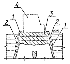 4.3. Торкретирование4.3.1. Торкретирование бетонных поверхностей конструктивных элементов сооружений производится в случаях, когда на поверхности бетона имеются небольшие по размерам разрушения в виде мелких каверн, раковин, трещин или коррозии бетона не превышающие по глубине 50 - 150 мм. Такие разрушения устраняются послойным нанесением под давлением сжатого воздуха на торкретируемую поверхность цементно-песчаного раствора (торкрет) цемент-пушкой или бетонной смеси (набрызг-бетон) бетон-шприцмашиной. Характеристики оборудования, используемого для торкретирования поверхностей приведены в справочном приложении 4. 4.3.2. Основными материалами для приготовления сухой торкретной смеси являются портландцементы любых видов, а также расширяющиеся и безусадочные цементы класса 400 и 500 и песок с крупностью зерен 1 - 8 мм, чистый без примеси ила и глины. Влажность пористых заполнителей должна быть в пределах 2 - 8 %. Песок с влажностью менее 2 % применять не следует, так как в этом случае цементно-песчаная смесь при транспортировании по шлангам будет расслаиваться. Для торкретирования рекомендуется применять цементный раствор составов 1:2 и 1:3 по массе. Для набрызг-бетона состав определяется проектом. 4.3.3. Для приготовления сухой смеси применяются преимущественно смесители принудительного действия. Готовая цементно-песчаная смесь пригодна к употреблению в течение 2 - 3 часов. Хранение ее более продолжительное время нежелательно, так как она слеживается и торкрет, получаемый из такой смеси, не будет обладать достаточной прочностью. Для предохранения сухой смеси от дождя на месте работ необходимо иметь навес или ларь с плотно закрывающейся крышкой. 4.3.4. Для улучшения сцепления с торкретируемой поверхностью ее, перед нанесением раствора и бетона, насекают, очищают сухим песком с помощью цемент-пушки или пескоструйного аппарата, а затем промывает под давлением. 4.3.5. Торкретирование ведется послойно. Общая толщина наносимых слоев не должна превышать: 15 мм - при нанесении раствора на горизонтальные или вертикальные неармированные поверхности; 25 мм - при нанесении раствора на вертикальные армированные поверхности; 75 мм - при нанесении бетонной смеси на горизонтальные поверхности; 50 мм - при нанесении бетонной смеси на вертикальные поверхности. При нанесении растворных или бетонных смесей на горизонтальные поверхности сверху вниз толщина слоя не ограничивается. 4.3.6. Расстояние между соплом и торкретируемой поверхностью должно быть 0,7 - 1,2 м в зависимости от марки цемент-пушки. Сопло нужно держать перпендикулярно рабочей поверхности. Первый слой торкрета наносят толщиной 10 - 15 мм, выравнивают его, срезая отдельные неровности лопаткой, и выдерживают его в течение 24 часов. После этого поверхность смачивают водой и кругообразными движениями сопла наносят следующие слои толщиной 5 - 10 мм. 4.3.7. Нанесение торкрета на вертикальную поверхность следует начинать с нижних ее участков, перемещая сопло вверх по мере образования торкретируемого слоя. Минимальный перерыв между нанесением на данной захватке смежных слоев торкрета или набрызг-бетона определяется строительной лабораторией из условия, что под действием струи свежей смеси не должен разрушаться предыдущий слой торкрета, а максимально допустимый перерыв при втапливании свежего слоя в предыд