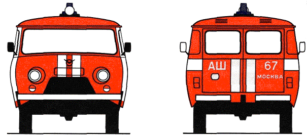 Рисунок А.4 - Цветографические схемы автомобилей пожарной охраны
