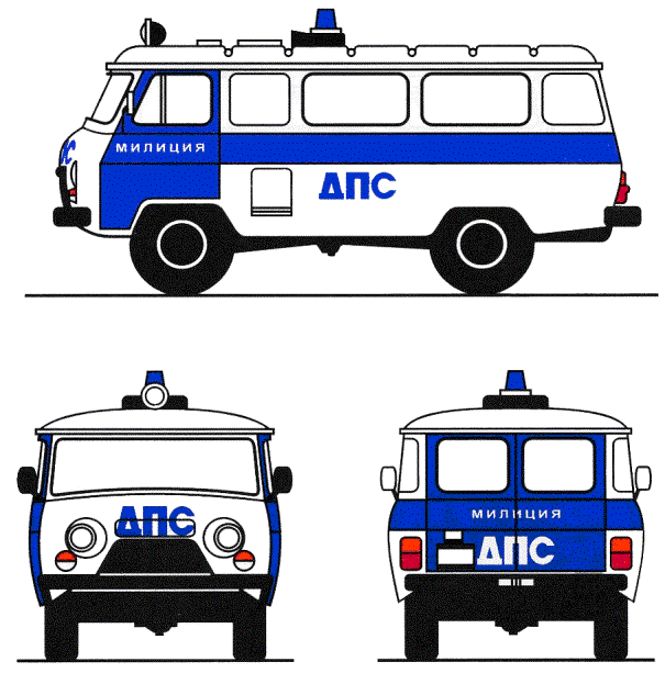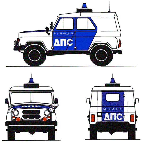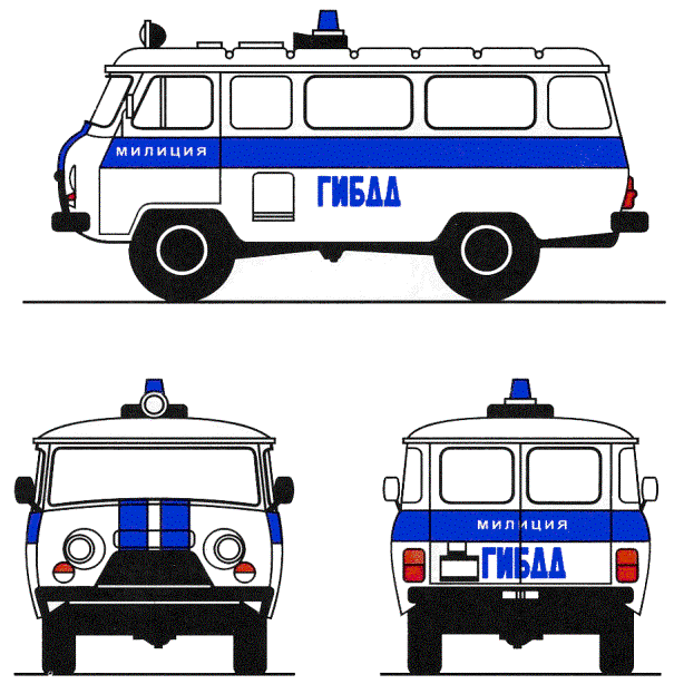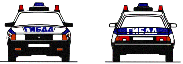 Рисунок А.14 - Цветографические схемы транспортных средств милиции и Государственной инспекции безопасности дорожного движения.