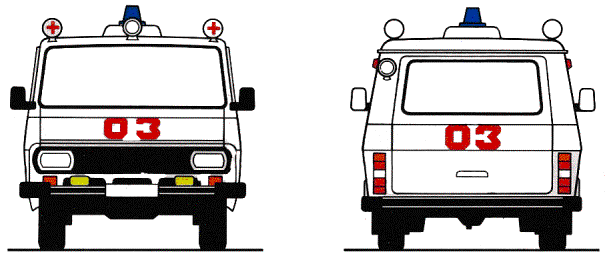 «03», номер больницы, гаража, эмблема «Красный Крест» по ГОСТ 197152)