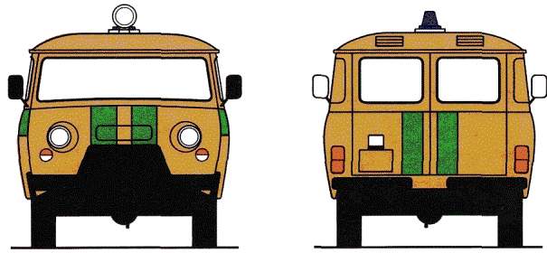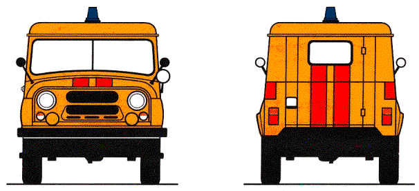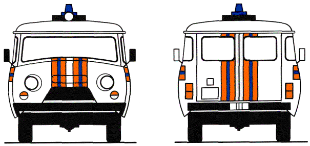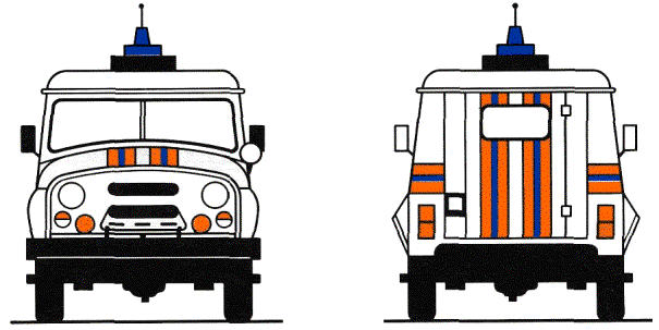 Рисунок А.19 - Цветографические схемы автомобилей аварийных служб