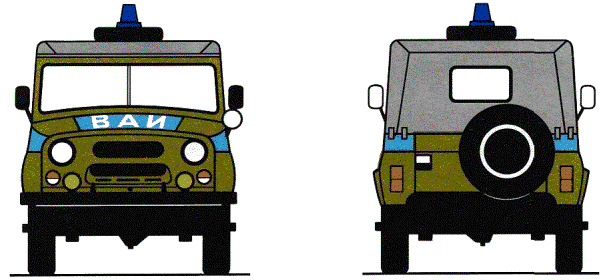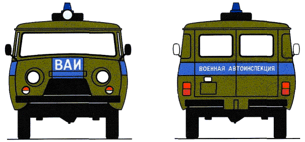 Рисунок А.23 - Цветографические схемы автомобилей военной автомобильной инспекции