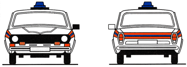 Рисунок А.10 - Цветографические схемы транспортных средств милиции и Государственной инспекции безопасности дорожного движения