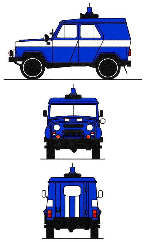 Рисунок А.9 - Цветографические схемы транспортных средств милиции и Государственной инспекции безопасности дорожного движения
