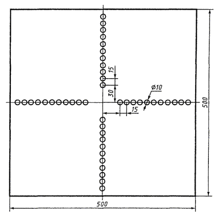 где φx, φy - углы поля зрения в горизонтальном и вертикальном направлениях, рад, соответственно; А и В - линейные размеры поля зрения по горизонтали и вертикали, соответственно, мм; R - расстояние от входного окна тепловизора до миры, мм; r - расстояние от входного окна тепловизора до входного зрачка оптической системы, мм. 13.6 Углы поля зрения φx и φy должны соответствовать указанным в ТУ на тепловизор. В противном случае на тепловизор выдают извещение о непригодности с указанием причин непригодности. 14 Оформление результатов поверки14.1 Результаты поверки вносят в протокол по форме в соответствии с приложением Б. 14.2 При положительных результатах поверки выдают свидетельство о поверке. 14.3 В свидетельстве о поверке указывают следующие данные: - диапазон измерения температур; - погрешность измерения температур; - разрешение в горизонтальном направлении; - угол поля зрения в горизонтальном и вертикальном направлениях. 14.4 При отрицательных результатах поверки выдают извещение о непригодности тепловизора в соответствии с требованиями ПР 50.2.006 с указанием причин непригодности. ПРИЛОЖЕНИЕ А(рекомендуемое) Эскиз тепловой миры с метками