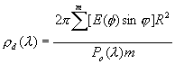где А - площадь области образца, освещаемой падающим излучением, м2; Ро(λ) - поток падающего на образец под углом φ = 0 параллельного пучка излучения при длине волны λ, Вт. При определении коэффициента диффузного отражения измеряют угловую зависимость освещенности отраженного излучения E(φ) в ваттах на квадратный метр в пределах угла φ от 0 до 85° с шагом 5°. Коэффициент диффузного отражения при этом определяют по формуле