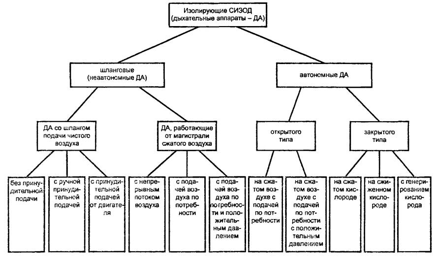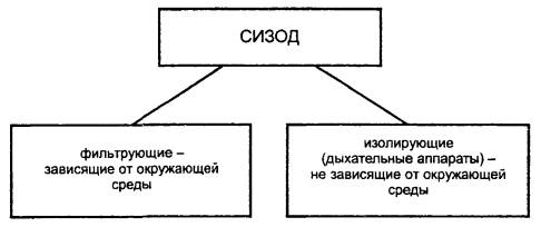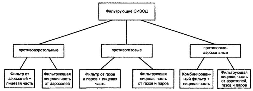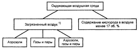 ГОСТ 12.4.034-2001 (EH 133-90) МЕЖГОСУДАРСТВЕННЫЙ СТАНДАРТ Система стандартов безопасности труда СРЕДСТВА ИНДИВИДУАЛЬНОЙ ЗАЩИТЫ ОРГАНОВ ДЫХАНИЯ Классификация и маркировка Occupational safety standards system. Respiratory protective equipment. Classification and marking Дата введения 2003-01-01 1. Область примененияНастоящий стандарт распространяется на средства индивидуальной защиты органов дыхания (далее - СИЗОД). Стандарт устанавливает классификацию и маркировку СИЗОД, а также классифицирует окружающую воздушную среду, в которой необходимо применение СИЗОД, для их правильного выбора. Стандарт не распространяется на следующие специальные виды СИЗОД: - пожарные; - военные; - медицинские; - авиационные. 2. Нормативные ссылкиВ настоящем стандарте использована ссылка на: ГОСТ 12.4.115-82 Система стандартов безопасности труда. Средства индивидуальной защиты работающих. Общие требования к маркировке. 3. Классификация3.1. Классификация окружающей воздушной средыОкружающая воздушная среда может быть загрязнена аэрозолями и/или газами и парами. Может также иметь место недостаток кислорода (рисунок 1). 1) Загрязнение воздуха измеряется и оценивается на основе токсических свойств загрязняющих (его) веществ (а). Рисунок 1 - Классификация окружающей воздушной среды При выборе СИЗОД также необходимо учитывать температуру и влажность воздуха, концентрации вредных веществ, содержание кислорода и другие факторы, характеризующие тяжесть и условия труда. 3.2. Классификация средств индивидуальной защиты органов дыханияСуществуют два различных метода обеспечения индивидуальной защиты органов дыхания от воздействия окружающей воздушной среды (рисунок 2): - очистка воздуха (фильтрующие СИЗОД); - подача чистого воздуха или дыхательной смеси на основе кислорода от какого-либо источника (изолирующие СИЗОД). Рисунок 2 - Классификация средств индивидуальной защиты органов дыхания 3.2.1. Фильтрующие средства индивидуальной защиты органов дыхания. Фильтрующие СИЗОД без принудительной подачи воздуха по конструкции подразделяют на: - фильтрующие лицевые части с клапанами / без клапанов; - лицевые части из изолирующих материалов с фильтрами и с клапанами / без клапанов. Лицевые части из изолирующих материалов подразделяют на полумаски / четвертьмаски и маски. Классификация фильтрующих СИЗОД представлена на рисунке 3. Противоаэрозольные фильтрующие лицевые части и фильтры по эффективности защиты подразделяют на следующие классы: - низкой эффективности; - средней эффективности; - высокой эффективности. Противогазовые фильтрующие лицевые части по времени защитного действия подразделяют на следующие классы: - низкой эффективности; - средней эффективности. Противогазовые фильтры по времени защитного действия подразделяют на следующие классы: - низкой эффективности; - средней эффективности; - высокой эффективности. Противогазоаэрозольные фильтрующие СИЗОД могут представлять собой любую комбинацию из представленных выше лицевых частей или фильтров. Более подробные детали классификации приведены в стандартах общих технических условий на различные виды и составные элементы СИЗОД. 3.2.2. Изолирующие средства индивидуальной защиты органов дыхания. Классификация изолирующих СИЗОД представлена на рисунке 4. 3.2.3. Лицевые части средств индивидуальной защиты органов дыхания. Лицевые части всех фильтрующих и изоли