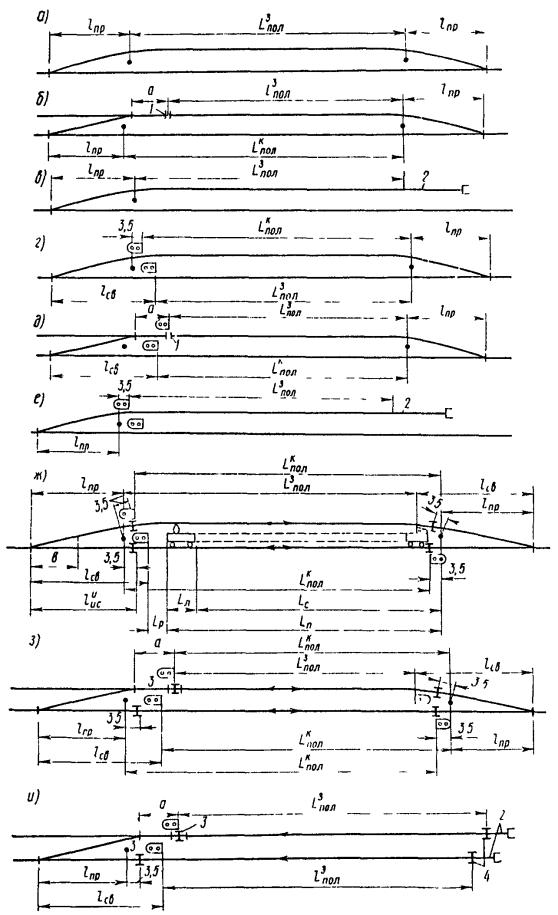 -- приемо-отправочных на разъездах, обгонных пунктах и промежуточных станциях (табл. 4.1)