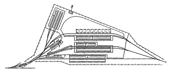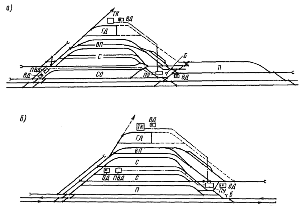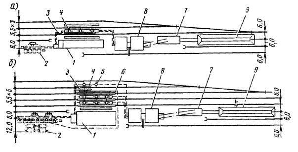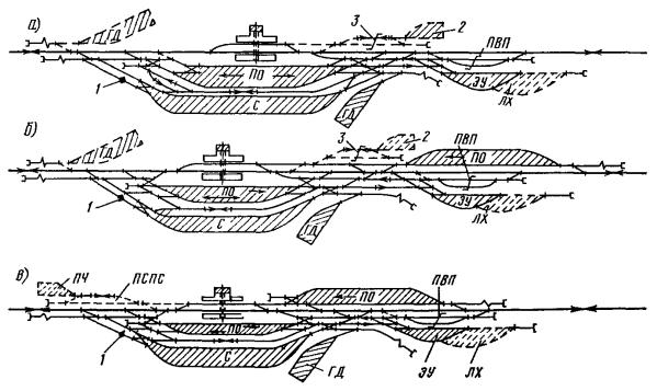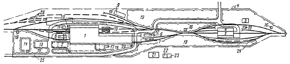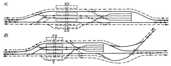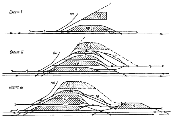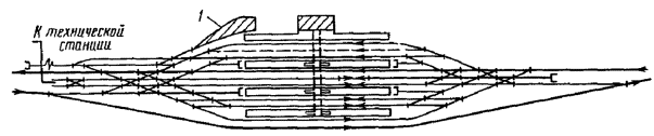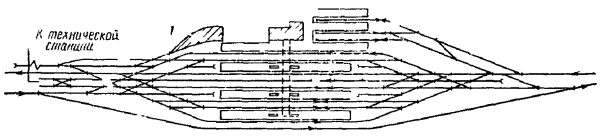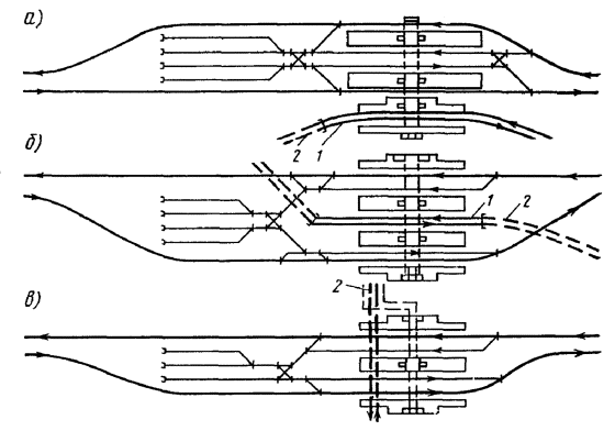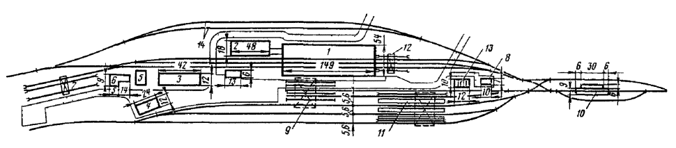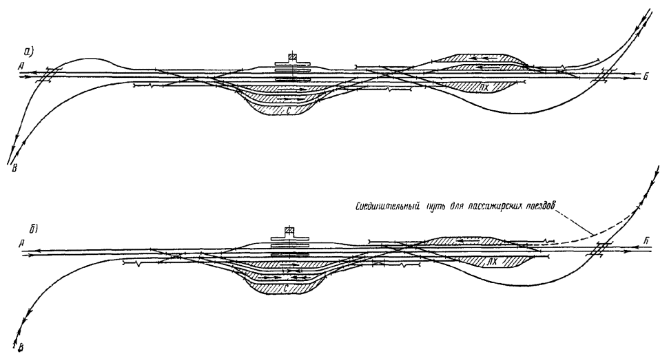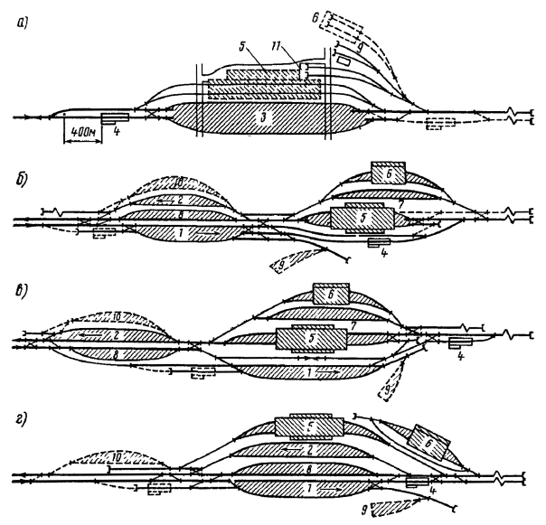 НАУЧНО-ИССЛЕДОВАТЕЛЬСКИЙ ИНСТИТУТ ПРОЕКТИРОВАНИЕ СПРАВОЧНОЕ И МЕТОДИЧЕСКОЕ РУКОВОДСТВО Издание второе, переработанное и дополненное Под редакцией МОСКВА «ТРАНСПОРТ» 1981 В книге излагаются технические требования, методические и нормативные указания по проектированию станций и узлов на железных дорогах, приводятся справочные и расчетные материалы, а также рекомендации, детализирующие и развивающие положения Инструкции по проектированию станций и узлов на железных дорогах Союза ССР (ВСН 56-78), Государственного стандарта Габариты приближения строений и подвижного состава железных дорог колеи 1520 (1524) мм (ГОСТ 9238-73) и ряда глав Строительных норм и правил. Книга рассчитана на инженерно-технических работников проектных институтов Минтрансстроя и МПС, а также на строителей и эксплуатационников железных дорог. Ил. 189, табл. 208, библиогр. 31 назв. Книгу написали: Э. В. Бакумов - пп. 4.4-4.6 главы 4; Е. П. Бакумова - главу 15, К. Г. Гусева - главу 3, пп. 4.1, 4.2 главы 4, пп. 5.1, 5.2, 5.4-5.7 главы 5, приложения 1, 4, 5; Л. Ф. Деревянченко - п. 4.7 главы 4, 12, 20, приложение 8; В. С. Емельяненков - п. 4.3 главы 4, 19; Л. А. Злобина - п. 23.1 главы 23, Б. Н. Козлов - главу 10; Г. А. Мухамедов - главу 1, пп. 23.3, 23.4 главы 23; Т. Т. Савина - п. 5.3 главы 5, 16 (кроме п. 16.1), главы 17 (кроме пп. 17.2, 17.3), приложение 3; К. К. Таль - п. 4.8 главы 4, 22, п. 23.2 главы 23 (ВНИИ транс. стр-ва), В. Д. Беленький - главу 18; З. Г. Чаруковская, И. С. Шлумукова - главу 21 (Киевгипротранс); Л. В. Бутков; Б. З. Житц - главы 6, 7; М. А. Лехтман - главу 2, п. 8.5 главы 8, приложение 2; В. Ф. Улеманов - главу 9, приложения 6, 7; В. Ф. Улеманов, К. К. Гореленкова - главу 8 (кроме п. 8.5); Л. Г. Докукина, В. А. Ивашкина - главу 13 (Гипротранстэи); Ю. А. Однопозов, Л. И. Мятежева, Г. В. Пяслане - главу 11; В. Д. Прокинова - главу 14 (Гипротранссигналсвязь); В. П. Демидов - п. 16.1 главы 16 и пп. 17.2, 17.3 главы 17 (ПТКБ ЦП МПС). ПРЕДИСЛОВИЕСправочное и методическое руководство Проектирование железнодорожных станций и узлов разработано в развитие нового нормативного документа - Инструкции по проектированию станций и узлов на железных дорогах Союза ССР (ВСН 56-78). В Руководство включены новые нормативные и справочные данные, регламентированные Строительными нормами и правилами (главы СНиП «Железные дороги колеи 1520 мм», «Автомобильные дороги», «Мосты и трубы» и др.), Правилами технической эксплуатации железных дорог Союза ССР, Государственным стандартом Габариты приближения строений и подвижного состава железных дорог колеи 1520 (1524) мм (для линий со скоростью движения поездов не свыше 160 км/ч) и рядом других нормативных документов, а также правилами, инструкциями и приказами МПС и Минтрансстроя. В Руководстве приводятся нормы и технические требования, которым необходимо следовать при проектировании всего комплекса устройств станций и узлов на новых железнодорожных линиях, при строительстве вторых путей и усилении (реконструкции) существующих железных дорог колеи 1520 мм общей сети Союза ССР и внешних железнодорожных подъездных путей колеи 1520 мм. Внутренние подъездные пути и промышленные станции проектируют по нормам главы СНиП «Промышленный транспорт» и Руководства по проектированию промышленных железнодорожных станций (1977 г.). С вводом в действие указанных выше новых нормативных документов возникла необходимость в коренной переработке справочного и методического руководства Проектирование железнодорожных стан