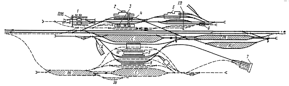 Сооружения и устройства пунктов подготовки вагонов к перевозкам (табл. 9.2)