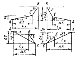 Элементы для разбивки главных точек кривых (табл. 16.42)