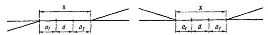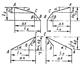 - между прямым и кривым путем, направленным в сторону от прямого (табл. 16.19)