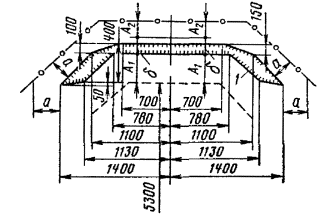 Уширение земляного полотна в кривых с наружной стороны (табл. 6.2)