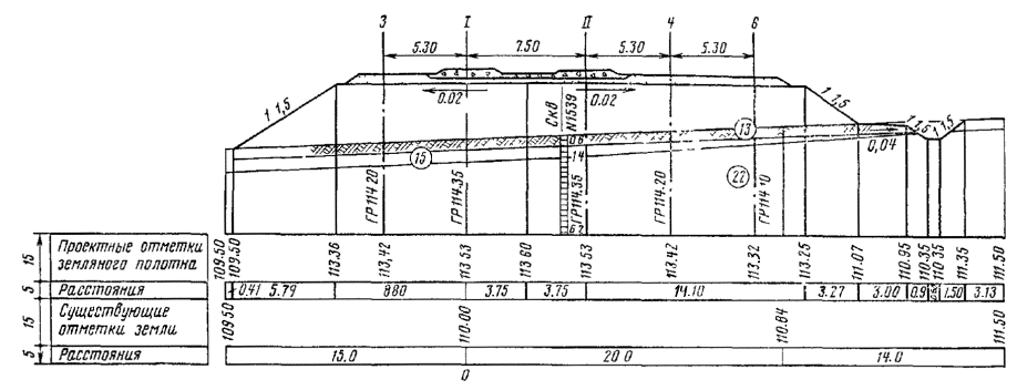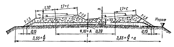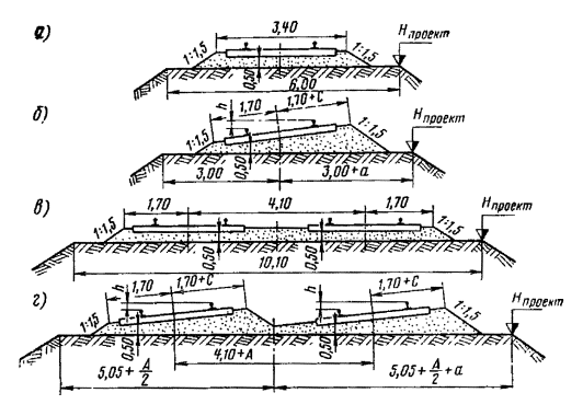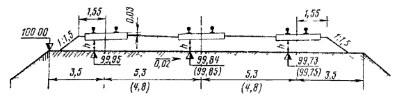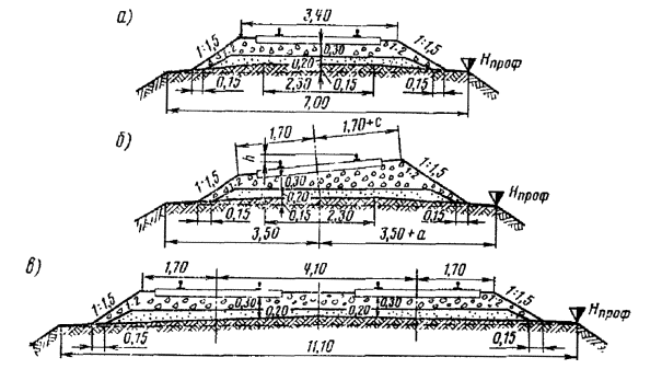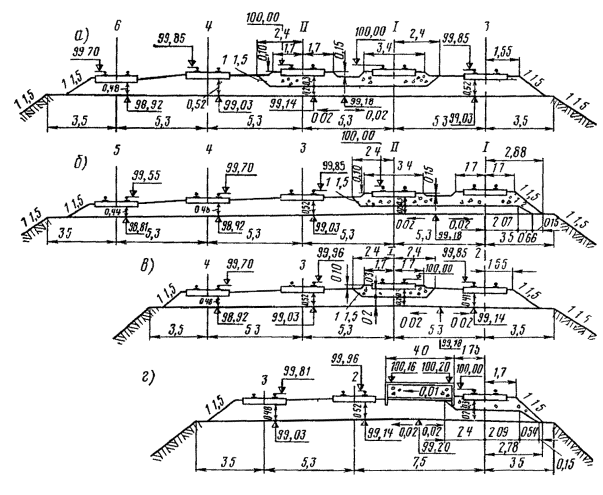 Ширина земляного полотна однопутных железных дорог на прямых участках (табл. 6.1)