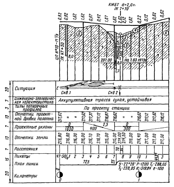 * Для внутриузловых соединительных путей, подъездных путей и отдельных участков короткого протяжения со сложным планом и большим числом плюсов профиль строят в масштабе 1 : 200.