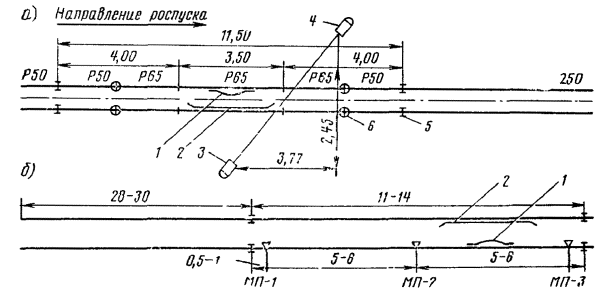 сдвоенного карликового с двумя головками, расположенного в кривых участках приемо-отправочных путей, оборудованных рельсовыми цепями (табл. 16.37)