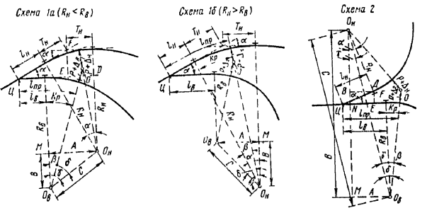 Схемы параллельного смещения пути и расчетные формулы (табл. 16.43)