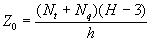 где Z0 - усилие в горизонтальных креплениях опорных элементов, кгс; H - толщина панелей, см; h - расстояние между креплениями рассчитываемого элемента, см; Nt - продольные усилия от воздействия температуры (см. п. 4.5), кгс; Nq - нагрузка от собственной массы панелей, кгс; (H - 3) - расстояние от места действия продольных усилий до менее нагретой поверхности панелей, см; Yц - расстояние от центра тяжести приведенного железобетонного сечения панели до менее нагретой поверхности панели (см), определяемое по формуле: