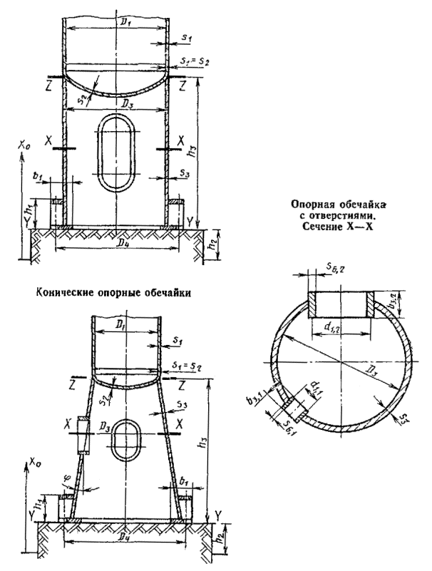 соотношением 6.8. Нагрузки стенки опорной обечайки от верхнего опорного элемента-кольца. Местное напряжение изгиба следует рассчитывать по формуле (23)