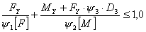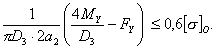 = 4.1.4. Эквивалентные напряжения следует рассчитывать: на наветренной стороне по формуле (6) sЕ если sx на подветренной стороне по формуле (7) sЕ если sx 4.1.5. Проверку условий прочности следует проводить: на наветренной стороне по формуле (8) max {|sx если sx на подветренной стороне по формуле (9) max {|sx если sx 4.2. Проверка устойчивостиПроверку устойчивости следует проводить для рабочих условий, условий испытания и монтажа. 4.2.1. Колонны, работающие под внутренним избыточным давлением, и колонны, работающие без давления. Если толщина стенки s3 опорной обечайки меньше или равна толщине стенки самой нижней обечайки колонны и механические свойства материала опорной обечайки не выше соответствующих свойств материала обечайки колонны, то расчет колонного аппарата не производят. В этом случае достаточно провести проверку устойчивости опорной обечайки по п. 5.3. Для остальных колонн проверку устойчивости следует проводить для каждого основного расчетного сечения по формуле (10). Нагрузки принимают в соответствии с таблицей. Значения [F] и [М] определяют по ГОСТ 14249 - 80, соответственно, для рабочих условий, условий испытания и монтажа. 4.2.2. Колонны, работающие под наружным давлением Для условий испытания и монтажа проверку устойчивости необходимо проводить в соответствии с требованиями п. 4.2.1. Для рабочих условий проверку устойчивости для каждого основного расчетного сечения, следует проводить по формуле (11) где [р], [F], [М] - определяют по ГОСТ 14249-80 для рабочих условий. 5. РАСЧЕТ ОПОРНОЙ ОБЕЧАЙКИ5.1. Расчет опорной обечайки следует проводить для рабочих условий и для условий испытания. Расчетные нагрузки в сечениях Z-Z (Fz = Gz; Мz) и Y-Y (FY=GY; MY) следует принимать в соответствии с таблицей. Для сечения Х-Х используют расчетные нагрузки сечения Y-Y. 5.2. Проверку прочности сварного шва, соединяющего корпус колонны с опорной обечайкой (сечение Z-Z по черт. 1, 2), следует проводить по формуле (12) sx = Толщина сварного шва а1 приведена на черт. 4 5.3. Проверку устойчивости опорной обечайки в зоне отверстия (сечение Х-Х по черт. 1, 2) следует проводить по формуле (13) где [F], [M] - определяют по ГОСТ 14249-80; y1, y2, y3 - коэффициенты, определяемые соответственно по черт. 5, 6 и 7. Если в сечении Х-Х несколько отверстий, то расчет следует проводить для наибольшего из отверстий по формуле (13) при условии, что для остальных отверстий коэффициенты y1 и y2 более 0,95. Если не соблюдены условия y1 > 0,95 и y2 > 0,95, то проверку устойчивости необходимо проводить по формуле (13) при