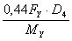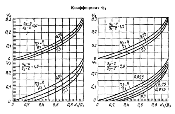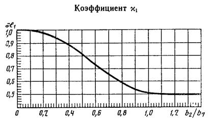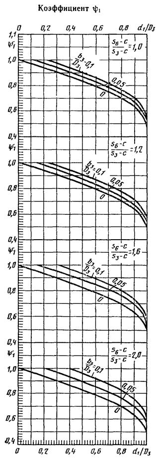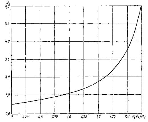 где A, W, Ys - соответственно площадь, наименьший момент сопротивления и координата центра тяжести наиболее ослабленного поперечного сечения. 5.4. Если в опорной обечайке есть кольцевой шов, то проверку следует проводить по формуле (14) sx = где:y1, y2, y3 - коэффициенты, определяемые соответственно по черт. 5, 6 и 7. Если кольцевой шов находится вне зоны отверстий, то коэффициенты y1 = y2 = 1,0 и y3 = 0. Узлы соединения опорной обечайки с корпусом колонны Черт. 4 Черт. 5 Черт. 6 Черт. 7 6. РАСЧЕТ НИЖНЕГО ОПОРНОГО УЗЛА6.1. Расчет нижнего опорного узла следует проводить для рабочих условий и для условий испытания. Расчетные нагрузки Fy и My принимают в соответствии с разд. 5. 6.2. Ширина опорного кольца Ширина нижнего опорного кольца b1 устанавливается конструктивно, при этом необходимо соблюдать условие формулы (15) Выступающая ширина нижнего опорного кольца должна удовлетворять условию 2d2 + 30 мм £ b2 £ 6.3. Напряжение сжатия в бетоне следует рассчитывать по формуле (17) sбет = [s]бет· 6.4. Напряжение в сварном шве нижнего опорного кольца. Для опорного кольца в исполнении А (черт. 8) рассчитывают по формуле (18) sх = Для опорных колец в исполнениях В, С, D (черт. 8) проверку по формуле (18) проводить не следует. 6.5. Толщину нижнего, опорного кольца в исполнениях А, В, С, D следует рассчитывать по формуле (19) s4 ³ max