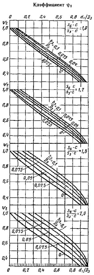 Для опорного кольца исполнения А толщину s4 дополнительно следует проверить по формуле (20) s4 ³ Если по формуле (19) или (20) будет получена величина s4 > 2s3 следует применять конструкции нижнего опорного узла исполнений С или D. 6.6. Толщину верхнего опорного элемента - кольца следует рассчитывать по формуле (21) s5 ³ max где c2 - коэффициент, определяемый по черт. 10