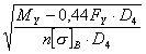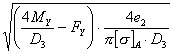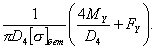 Примечания: 1. При расчете моментов M V 2. При расчете момента M V 3. При расчете моментов M V 4. КОРПУС КОЛОННОГО АППАРАТА4.1. Стенка колонного аппарата должна быть рассчитана на прочность и устойчивость.4.1.1. Расчет напряжений Расчет напряжений следует проводить во всех сечениях, указанных в разделе 1, для рабочих условий (F=F1; M=M1; p=p1) и для условий монтажа (F=F3; М=М3; р=0). 4.1.2. Продольные напряжения sx следует рассчитывать: на наветренной стороне по формуле (3) sx на подветренной стороне по формуле (4) sx 4.1.3. Кольцевые напряжения sy следует рассчитывать по формуле (5) sy