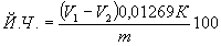 где V1 - объем раствора серноватистокислого натрия концентрации 0,1 моль/дм3, израсходованный на титрование холостого опыта, см3; V2 - объем раствора серноватистокислого натрия концентрации 0,1 моль/дм3, израсходованный на титрование раствора с пробой, см3; 0,01269 - количество йода, соответствующее 1 см3 раствора серноватистокислого натрия концентрации 0,1 моль/дм3; К - поправочный коэффициент для приведения концентрации раствора серноватистокислого натрия точно к 0,1 моль/дм; т - массы пробы ткани, г. Допустимое расхождение между результатами двух параллельных определений не должно превышать 10 % относительно результата измерений. При расхождении более 10 % необходимо провести еще два измерения. За результат измерения принимают среднеарифметическое двух параллельных определений. Промежуточные вычисления проводят до третьего знака после запятой. Округление конечного результата проводят до второго знака после запятой.