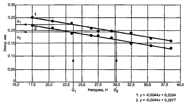 Фактическое расхождение при Р = 0,95 между двумя параллельными