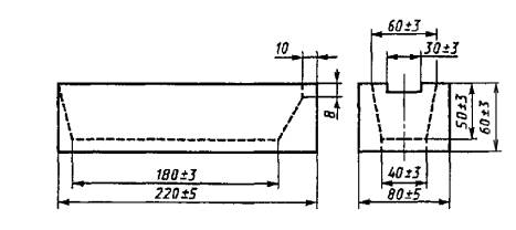 (Поправка, ИУС 7-2004). 5.1.2. Рекомендуемые режимы термической обработки сплавов в отливках приведены в приложении В. 5.1.3. Механические свойства сплавов, при изготовлении отливок из которых применялись способы литья и термическая обработка, не приведенные в таблице 2, должны соответствовать требованиям нормативной документации на отливки. 5.2. Методы испытаний 5.2.1. Химический состав определяют по ГОСТ 25086, ГОСТ 11739.1 - ГОСТ 11739.24, ГОСТ 7727. Допускается определять химический состав другими методами, не уступающими по точности стандартным. При разногласиях в оценке химического состава анализ проводят по ГОСТ 25086, ГОСТ 11739.1 - ГОСТ 11739.24. 5.2.2. Механические свойства сплавов определяют на отдельно отлитых образцах или образцах, выточенных из специально отлитой заготовки или из прилитой к отливке заготовки, отлитых в кокиль или песчаную форму. 5.2.3. Форма и размеры отдельно отлитых образцов при литье в песчаные формы и кокиль должны соответствовать приведенным на рисунке 2 и в таблице 3, а при литье под давлением - на рисунке 3. Таблица 3 Размеры, мм