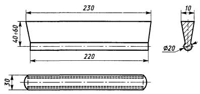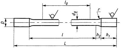 Рисунок 2 - Форма и размеры образца при литье в песчаную форму и кокиль Рисунок 3 - Форма и размеры образца при литье под давлением Рисунок 4 - Заготовка для вырезки образцов Допускаемая разность наибольшего и наименьшего диаметров по длине рабочей части образца должна быть не более 0,3 мм. Допускается уменьшение длины головки образца, при этом длина головки определяется конструкцией захвата испытательной машины. Для крупных образцов (литье в песчаные формы, в кокиль) расчетная длина образца должна быть l0 = 5 d0. Рекомендуется горизонтальное расположение отдельно отливаемых образцов в форме. 5.2.4. Заготовки, из которых вытачивают образцы, должны иметь диаметр 20 мм и должны соответствовать рисунку 4. Размеры, указанные на рисунке 4, являются справочными и даны для конструирования кокиля. Форма и размеры выточенных образцов должны соответствовать ГОСТ 1497. Диаметр расчетной длины образцов должен быть не менее 5 мм, расчетная длина l0 = 5d0. Форма и размеры прилитых заготовок при литье в кокиль или песчаные формы устанавливаются в нормативной документации или изготовителем. 5.2.5. Форма и размеры отдельно отлитых образцов при литье по выплавляемым моделям должны определяться нормативной документацией. Расчетная длина должна быть l0 = 5d0. Форма и размеры прилитых или отдельно отлитых заготовок устанавливаются изготовителем или нормативной документацией на отливки. 5.2.6. Отдельно отлитые образцы при всех видах литья испытывают с литейной коркой. Допускается нарушение сплошности литейной корки в местах зачистки поверхности образца. 5.2.7. При определении механических свойств на образцах с расчетной длиной менее 60 мм для сплавов, у которых установлен минимальный показатель относительного удлинения менее 1 %, относительное удлинение не определяют. 5.2.8. Способ литья и вид термообработки образцов для испытания должны соответствовать способу литья и режиму термообработки, установленным для отливок из этих сплавов. Допускается для всех видов литья проводить проверки механических свойств на образцах, отлитых в кокиль или песчаные формы. 5.2.9. Показатели механических свойств образцов, вырезанных из отливок, должны быть установлены нормативной документацией на отливки. 5.2.10. Механические свойства определяют по ГОСТ 1497, твердость по Бринеллю - по ГОСТ 9012 при диаметре шарика 10 мм и нагрузке 9806 Н (1000 кгс) или при диаметре шарика 5 мм и нагрузке 2450 Н (250 кгс) с выдержкой в обоих случаях от 10 до 30 с. 5.2.11. Газовая пористость отливок определяется непосредственно на отливках или образцах, вырезанных из отливок, в соответствии с 4.3.8. ПРИЛОЖЕНИЕ А(справочное) Термины, применяемые в стандарте, и их определенияТаблица A.1
