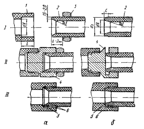 Втулки под фланец из ПНД приваривают к концам труб контактной стыковой сваркой; из ПВД - контактной раструбной сваркой (в случаях, когда втулка из ПВД на тип выше, чем тип трубы, согласно п. 3.4) и раструбной стыковой сваркой (когда втулка и труба из ПВД одного и того же типа); из ПВХ - склеивают с концами труб враструб.