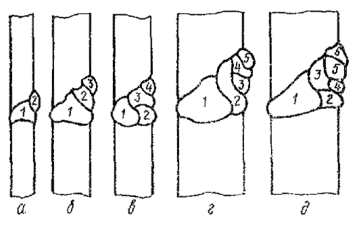 стыкового шва (вариант I): Рис. 4. Схема наложения вертикального