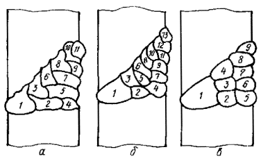 Примечание. При однопроходной сварке необходимо наложение подварочного шва. Рис. 3. Схема наложения вертикального