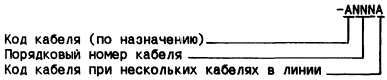 Квалифицирующий символ "-" в простом обозначении может быть опущен. Буквенный код кабеля (по назначению) может быть заменен цифровым или вообще опущен. Порядковый номер кабеля принимают в пределах панели, устройства, агрегата или цеха в зависимости от конкретных условий проектирования. 7.3. Буквенные коды кабелей (по назначению) приведены в приложении 5. 7.4. Структура сложного обозначения кабеля может быть представлена в виде
