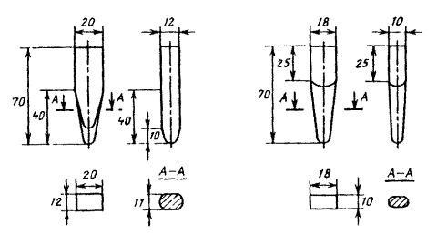 II-1 II-2 Сечение жилы, мм2......................................................................................... 1-1,5 2,5 Размеры, мм D.................................................................................................................. 7,2 9,5 d................................................................................................................... 5,3 4,8 H.................................................................................................................. 4,5 5,3 Масса 1000 шт., кг..................................................................................................... 0,2 ПРИЛОЖЕНИЕ 10. ФОРМЫ ДЛЯ ПРОПАНО-КИСЛОРОДНОЙ СВАРКИ АЛЮМИНИЕВЫХ ЖИЛ
