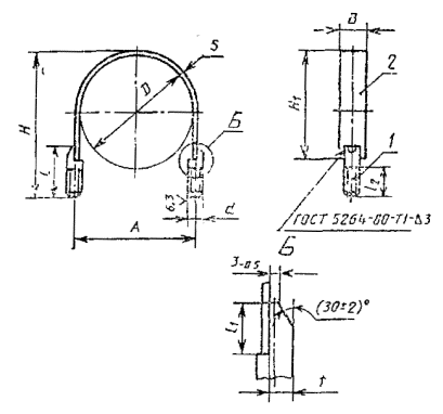 Пример условного обозначения хомута D = 150 мм из стали Ст3сп с покрытием Ц9.хр: Хомут 150-Ст3сп-Ц9.хр ГОСТ 24138-80 3. Отклонение оси поверхности d относительно оси поверхности В не должно быть более 2 мм. 4. Допуск параллельности и перекос осей поверхности d не должны быть более 2 мм. 5. Допускается сварка в среде углекислого газа по ГОСТ 14771-76 и контактная по ГОСТ 15878-79 по соглашению с заказчиком. 6. Сварочные материалы должно выбирать предприятие-изготовитель в зависимости от свариваемых материалов. 7. Технические требования - по ГОСТ 24140-80. |