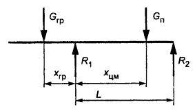 Пример. Определим допускаемую массу перевозимого груза при использовании нового погрузчика ДП-1602 с дизелем Перкинс со следующими характеристиками: GГР=1,6 т, GП=2,705 т, L=1500 мм, хЦМ=824 мм, хГР=862 мм. Максимальная допускаемая статическая нагрузка (п. 1.3.1) от колес погрузчика R1=3,6 тс (1,8 тс на каждое из двух колес на оси). Подставляя численные значения, определим массу груза, допускаемую к перевозке на данном погрузчике
