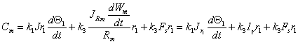 где в этих формулах CR - крутящий момент двигателя на дороге; Сm - крутящий момент двигателя на стенде с механической имитацией инерции; Се - крутящий момент двигателя на стенде с электронной имитацией инерции; Jr1 - момент инерции трансмиссии транспортного средства, передаваемой на ведущие колеса; Jr2 - момент инерции неведущих колес; JRm - момент инерции динамометрического стенда с механической имитацией инерции; JRe - момент механической инерции динамометрического стенда с электронной имитацией инерции; М - масса транспортного средства на дороге; I - эквивалентная инерция динамометрического стенда с механической имитацией инерции; IM - механическая инерция динамометрического стенда с электронной имитацией инерции; Fs - результирующая сила на постоянной скорости; C1 - результирующий крутящий момент электронной имитации инерции; F1 - результирующая сила электронной имитации инерции;