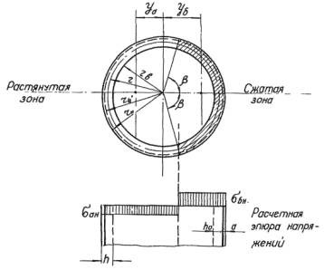 окружности трубы и толщиной стенки трубы, определяются по формуле (15) напряжение в арматуре sан и по формуле (18) напряжение в бетоне sбн от нормальной силы и